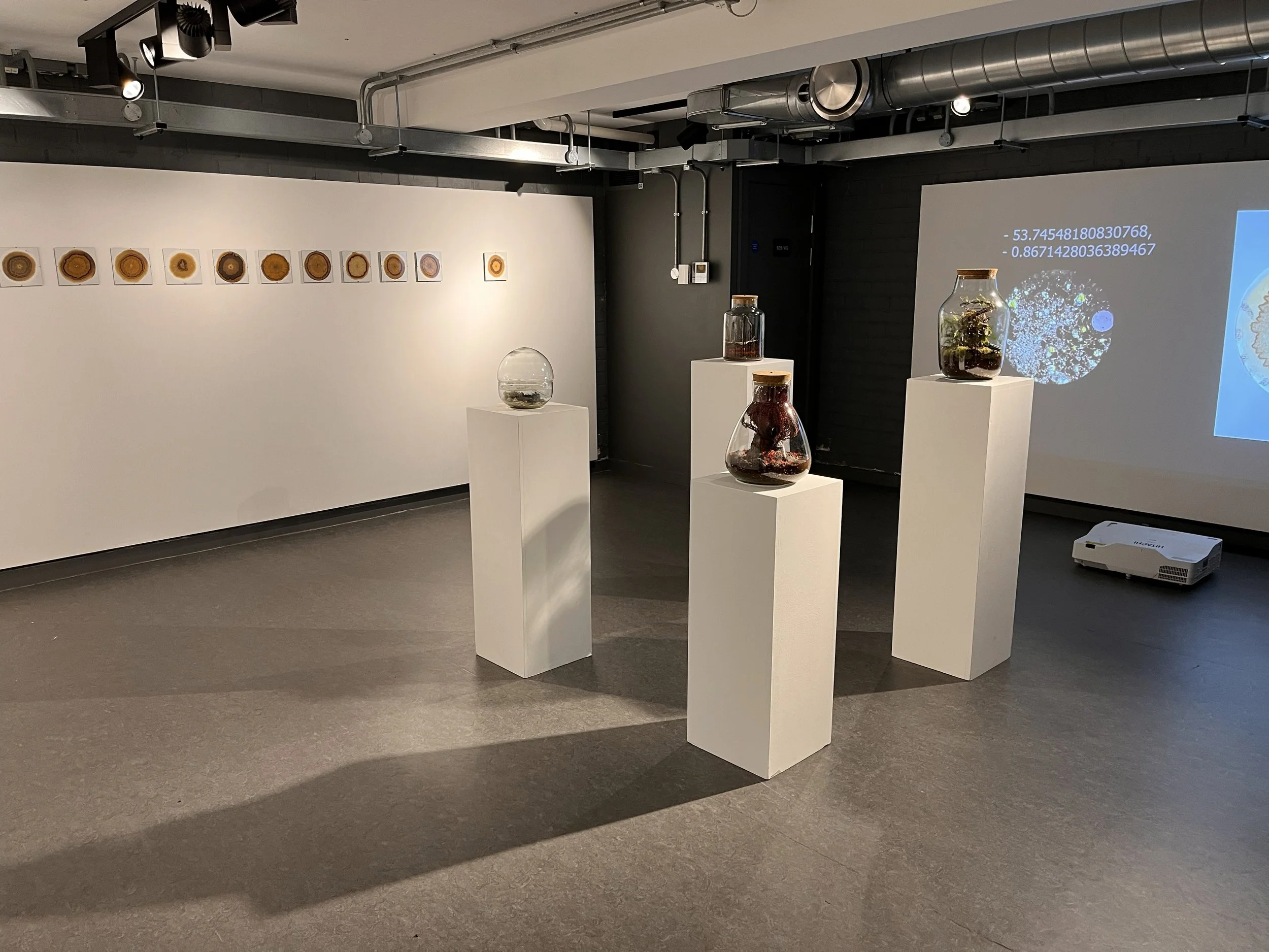 In Ecofeminism Under Glass: Women of Derring-Do in the Panicocene, I respond to the climate crisis with chromatography, microscopy and a series of terrariums; miniature ecosystems housed in repurposed glass containers that serve as metaphors for resilience, care, and survival. Inspired by the accidental invention of the terrarium in 1829 and the linguistic evolution of “derring-do,” I embrace mistakes and misprints as generative forces in both ecological and artistic processes.